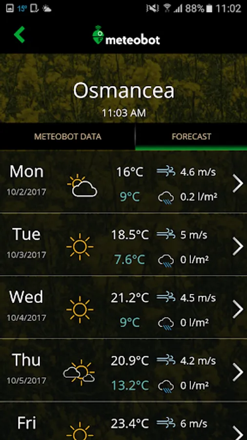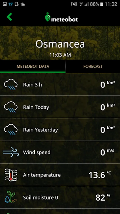 Meteobot is a weather station app, specialized for precision farming. It gives you real-time information about the weather and soil conditions in your fields – directly from your Meteobot weather station.
