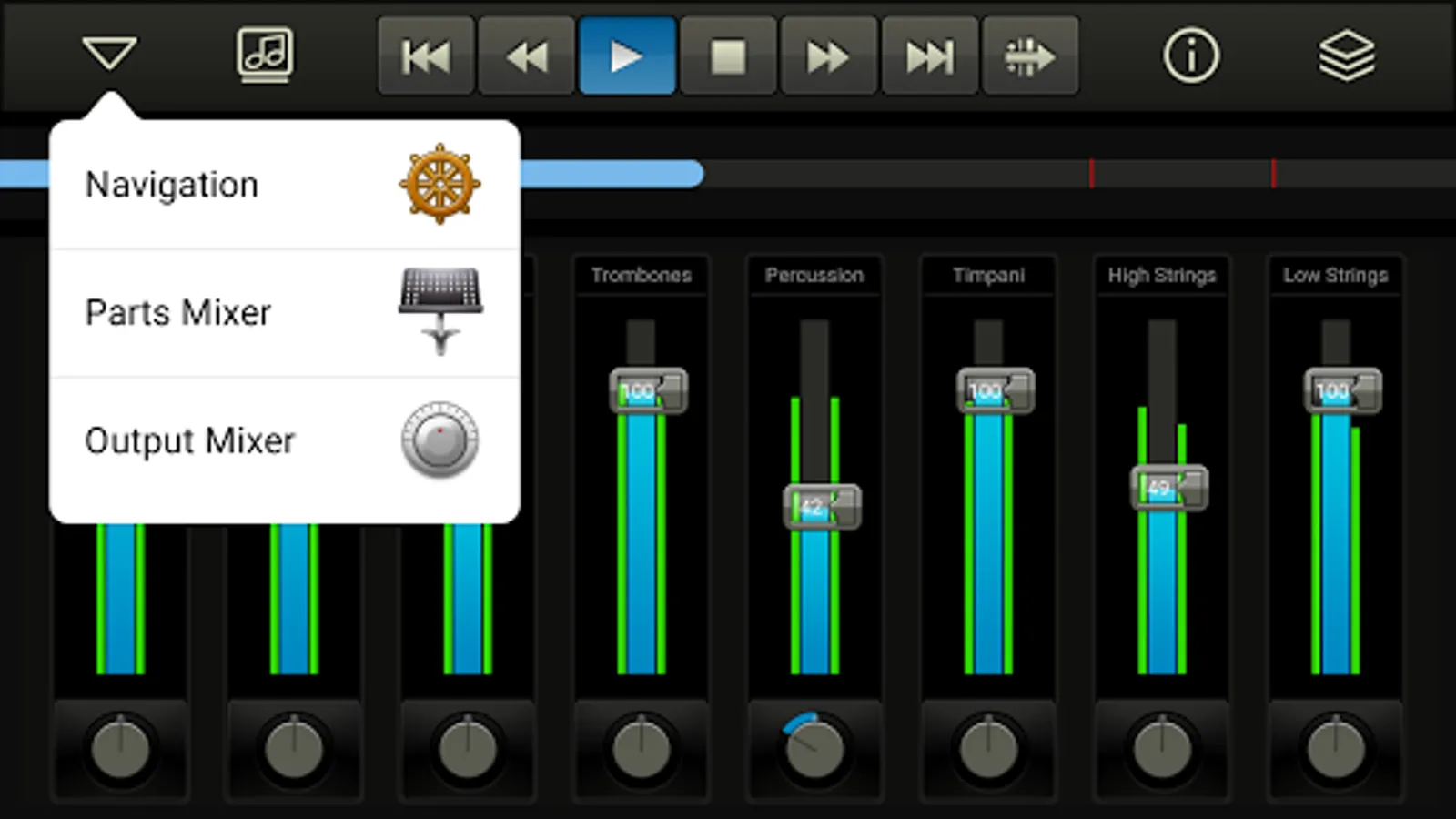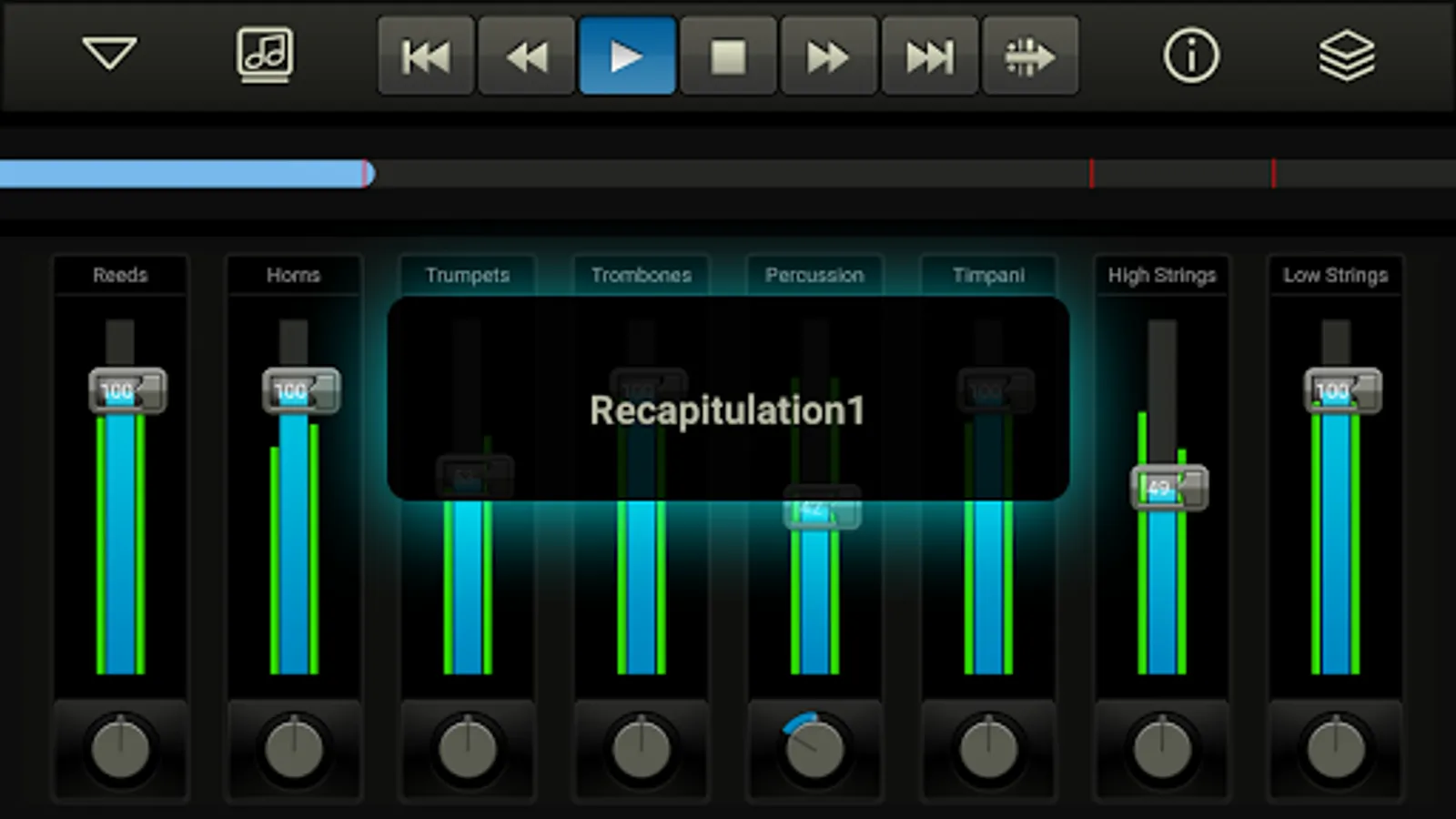 * Bar by bar music navigation.