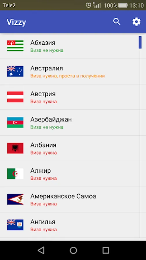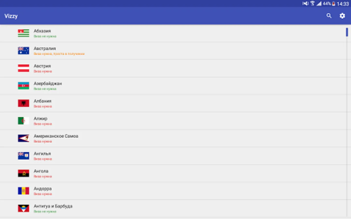 Vizzy app tells you what country you can go, and what documents and procedures are needed for this. Find the country where you want to go and find out instantly whether a visa is required for this.