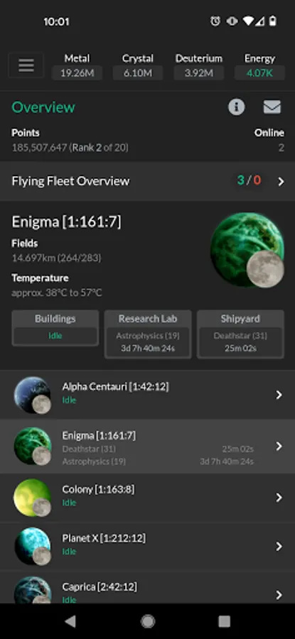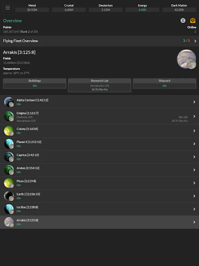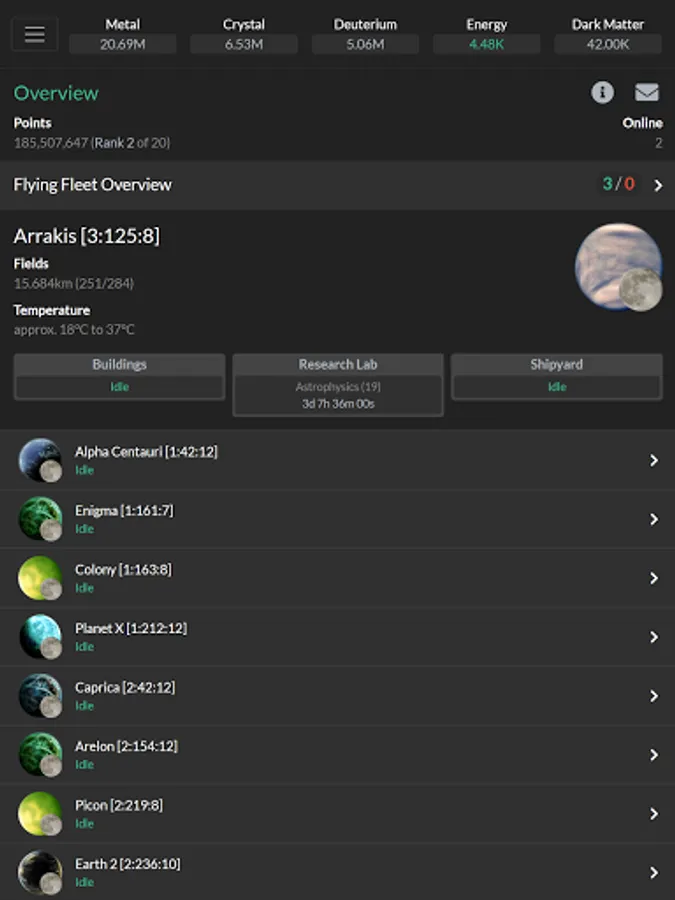 In this resource management game you'll colonize planets, build resource facilities, research new technologies, build defenses and fleets of ships that you can use to conquer your enemies. Join an alliance for learning, cooperative attacks and defense missions and to socialize with friends.