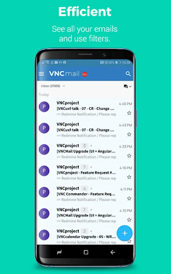 The VNCmail App is a powerful email app for your VNCmail mailbox.