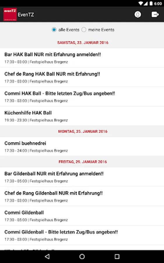 Mobile version of the Employee Administration Platform EVENTZ Catering. Only for existing employees of EVENTZ.
