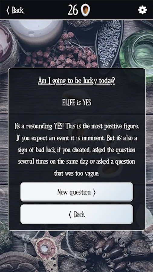 - Do not cheat! Don't ask the same question several times or questions that are too similar in order to get the answer you want. Only the first answer is valid and cheating will only bring you bad luck. In Africa some people say that it is even dangerous to play with your destiny in this way.