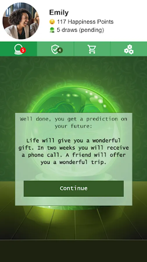π What the hell is this app?! It is an application designed for those who really want and will succeed in the future! Around the Ball of Luck (A crystal ball and fortune-teller dedicated to luck) you will be guided to receive every day some gifts of life: