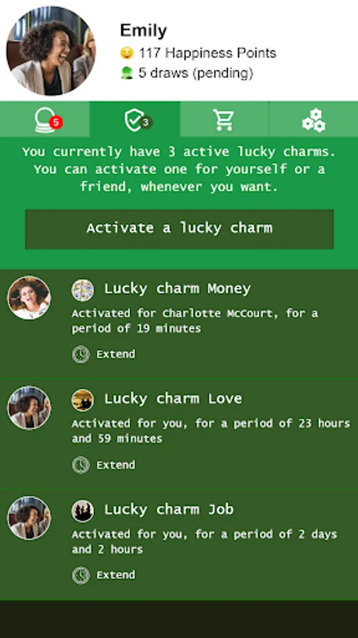 π Our lucky charms act on love, money, family, friends, success and work. They are active for the chosen time, and as long as the application remains installed on your device.