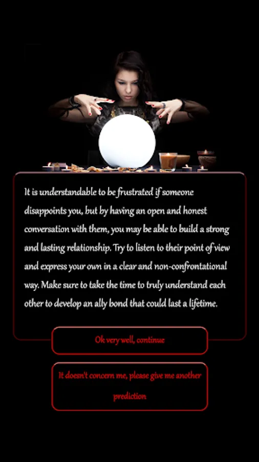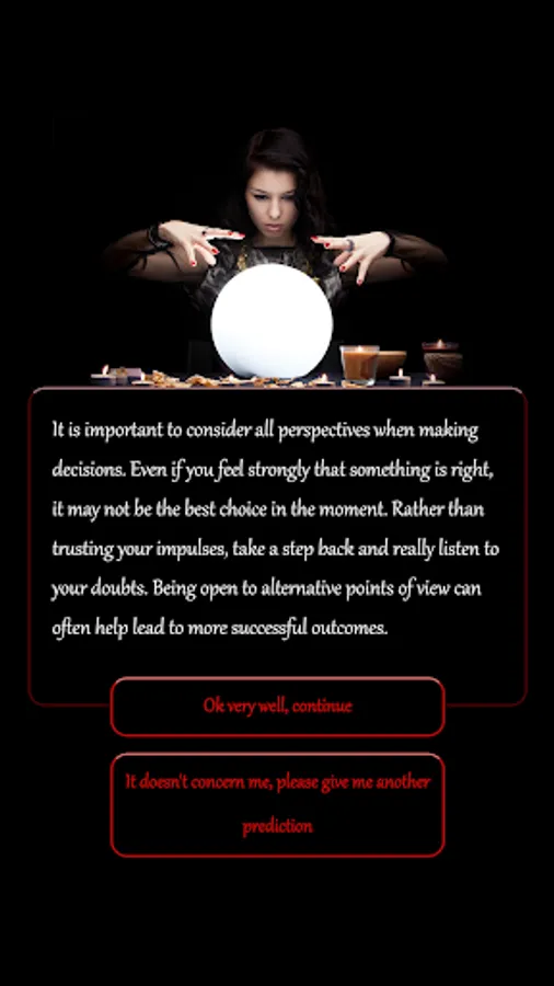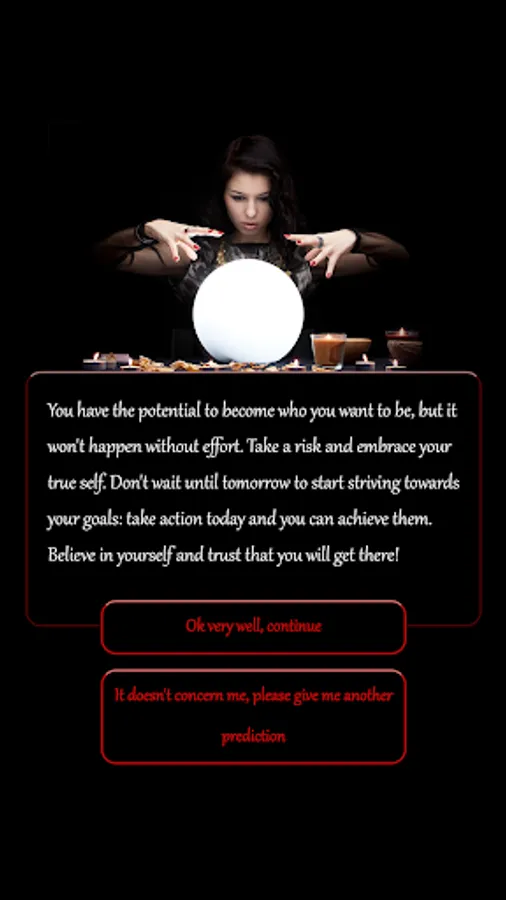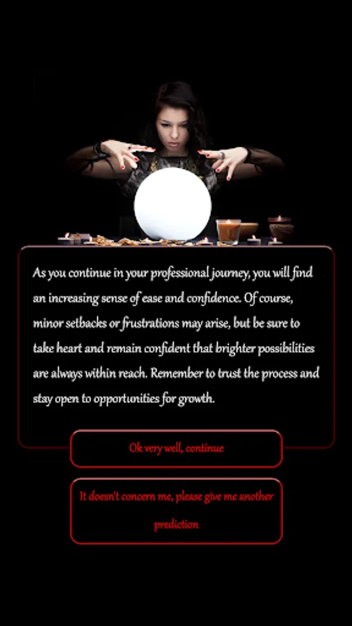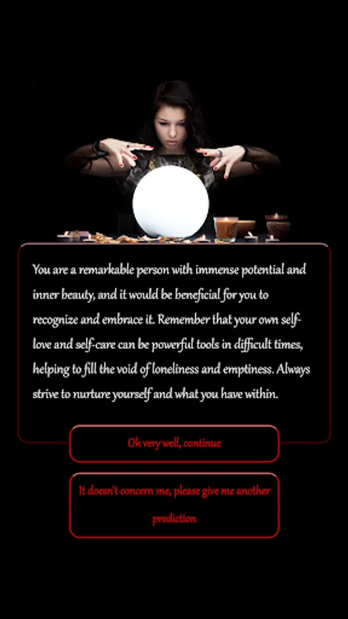 With MariA, you will have access to reliable and accurate predictions about your future. Maria uses a crystal ball to offer you visions on different aspects of your life, such as love, work, health and finances. You will be able to get seven free predictions a day, right from the app.