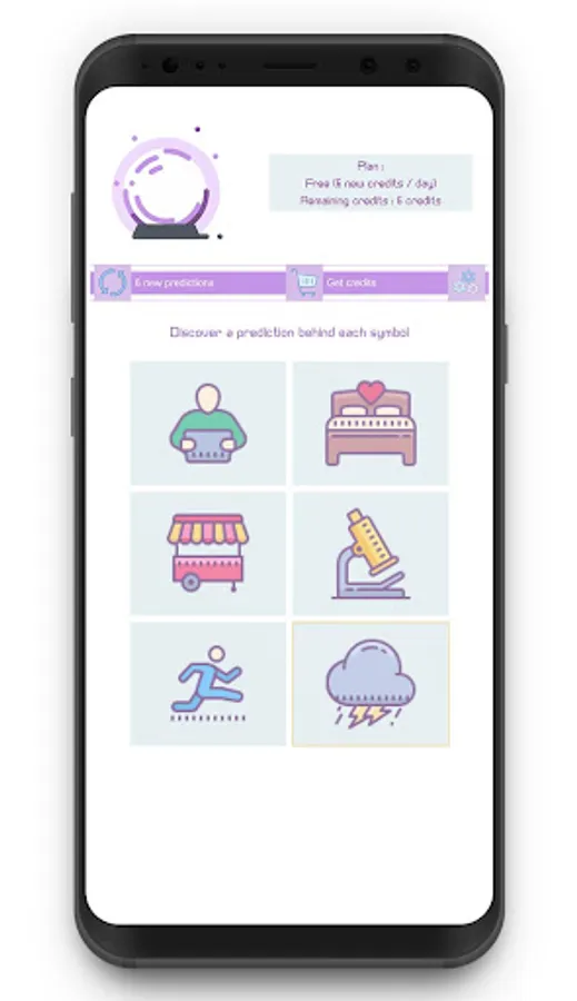 As in all good clairvoyance, it will be up to you to make the link between symbolic predictions and your life. The fortune teller ball will offer you six predictions in the form of a symbol. Choose the symbol that inspires you, the one that makes sense to you, or follow your intuition. Behind each symbol will hide a prediction about your future. By associating the symbol and the text you will discover your near or far future.