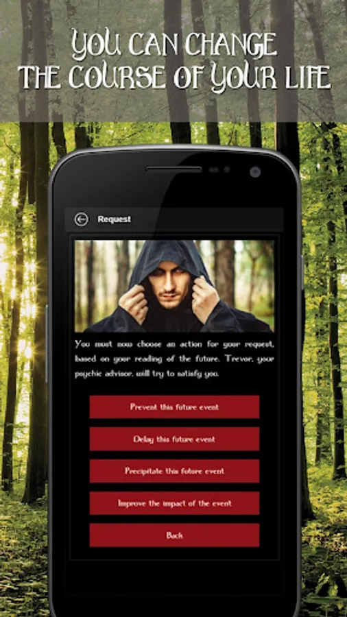 How does it work? Once you have a personal psychic reading, you will have the opportunity to make a request to your Trevor advisor. You can ask him to prevent, delay, precipitate, etc., the event that has been predicted to happen to you. Be careful, only one request is allowed at a time. But you will have the opportunity to launch countless more later!