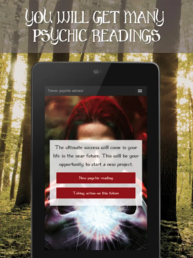 This application allows you to get 4 psychic readings from Trevor, free of charge, in a 4-hour period. It would be irresponsible of Trevor (or any other psychic, for that matter) to provide you with more automatically because your fate is not an open book either. Wanting to know everything at once would increase the risk of errors or inaccuracies! However, you will be able to get more in the application, free of charge.