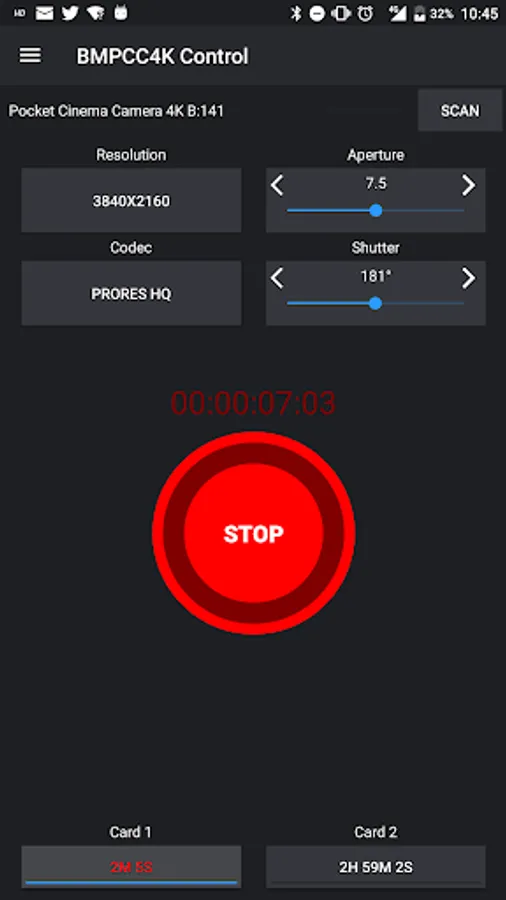 - Start/Stop a recording remotely on a Blackmagic Pocket Cinema Camera 4K and URSA Mini Pro via Bluetooth.
