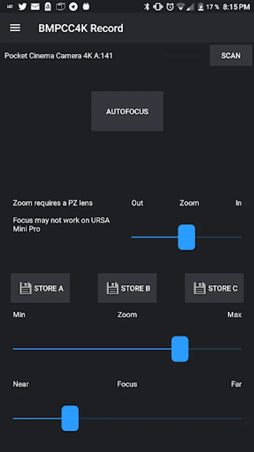 - No focus control on URSA Mini Pro (EF) - nothing we can fix in the app