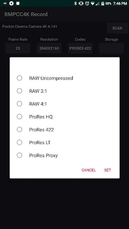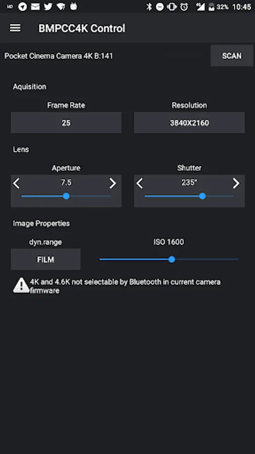 - No way to detect via Bluetooth if the camera still supports Cinema DNG and it it supports Blackmagic Raw