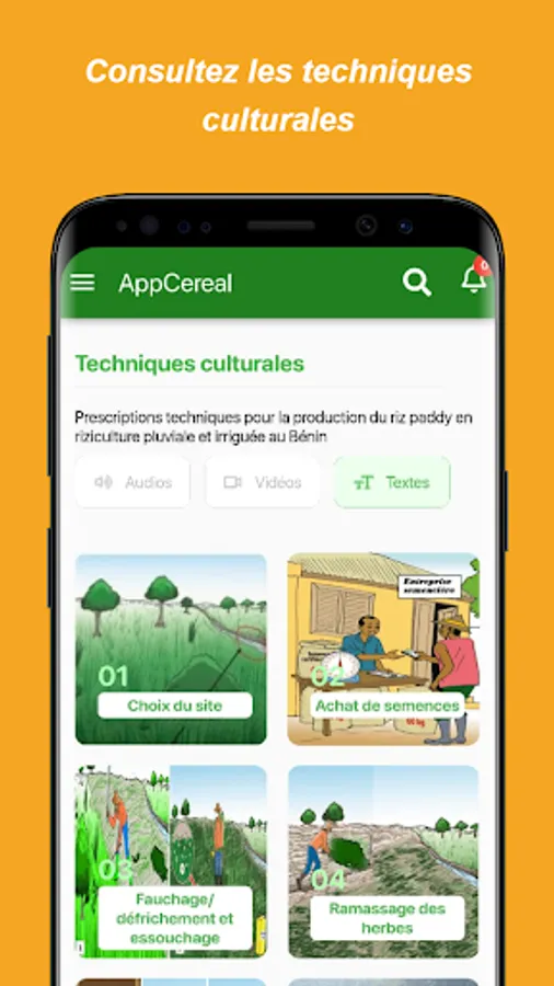 Finally, AppCereal offers information on the price of products, an alert on agro-climatic conditions as well as practical advice for actors in the cereal sectors; this in video, audio and text mode in different local languages. Producer cooperatives through AppCereal have reliable data to advocate with their partners.