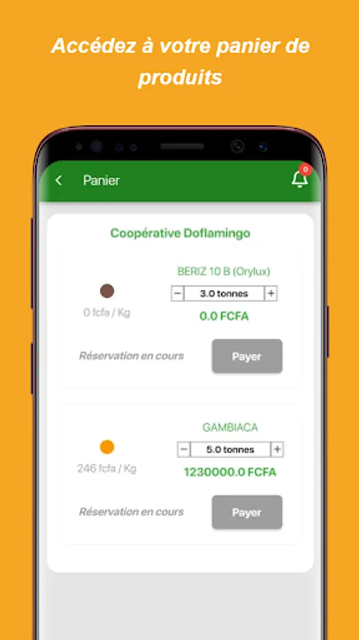 A Marketplace that facilitates the interactions of all actors in the chain (processing units, machine requesters, producers, seed companies, machine suppliers, input suppliers, grain traders, distributors and others); allows them to offer their products and services via this platform. Access to financing allows producers to benefit from credits: they thus receive credit via their Mobile Money account from the comfort of their homes.