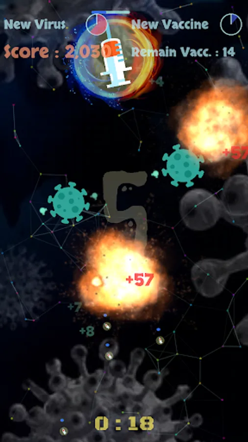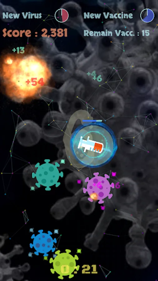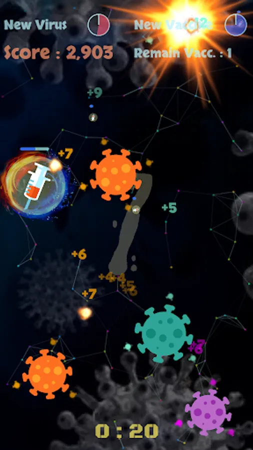 바이러스 볼을 많이 터트릴수록 높은 점수를 얻을 수 있습니다.