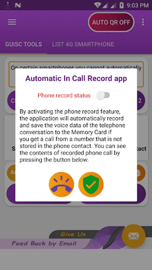 3. Automatic call recorder feature if the destination number or caller has not been recorded contact book