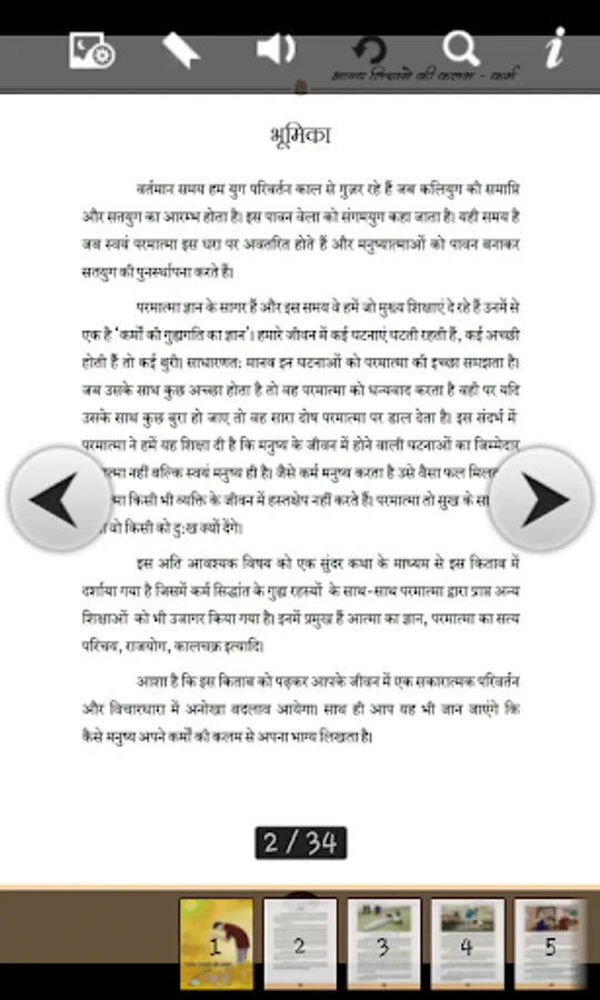 • Every page has its small thumbnail which is listed bottom horizontally on the buttons "Previous" and "Next” or only leftward or rightward arrows.