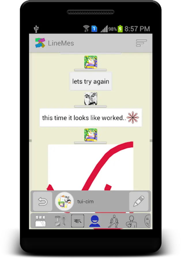 Every written letters and words are lines and so are hand drawn sketches. What if you could draw figures with your fingers and send them to your groupies as per of communication? Try this and explore another dimension of communication.