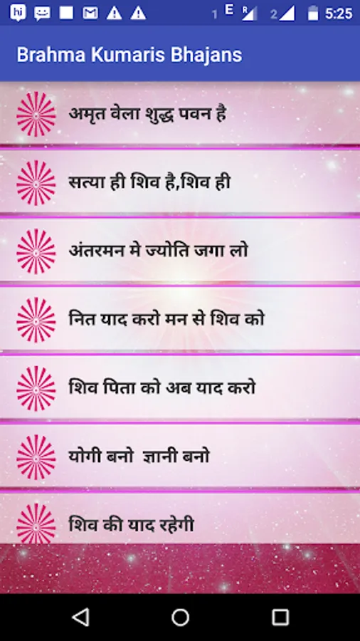 bhajan player has play,pause,next,previous,single repeat and all repeat options.