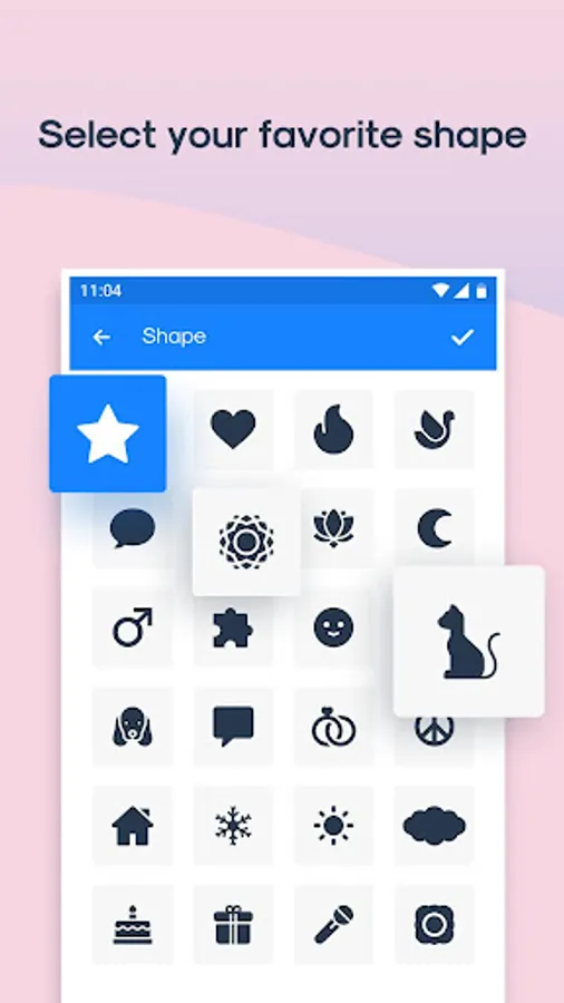 • Select from 17 distinctive and clean art shapes like butterfly, Star, Heart, leaf, and fish etc.