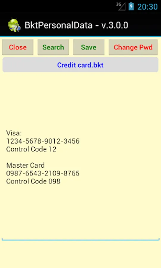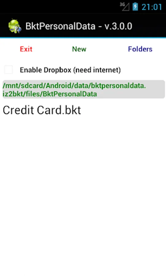Store your personal data, your passwords, your credit card or simply important notes safely. Supports cloud systems like Dropbox and is compatible with BktPersonalData for Windows (https://www.maniaradio.it) so you can have your data always available and updated in real time on your smartphone, on your tablet and all your Windows PC.