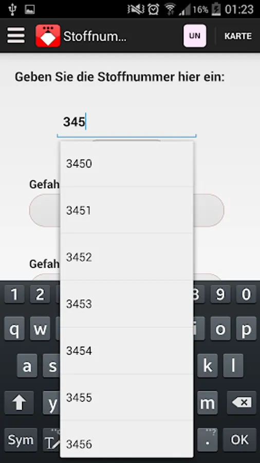 Hazard identification numbers, hazard class and properties quickly and easily via the newly developed material number search more than 3000 UN - numbers.