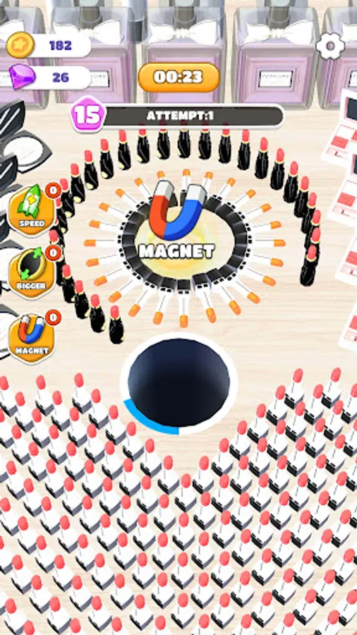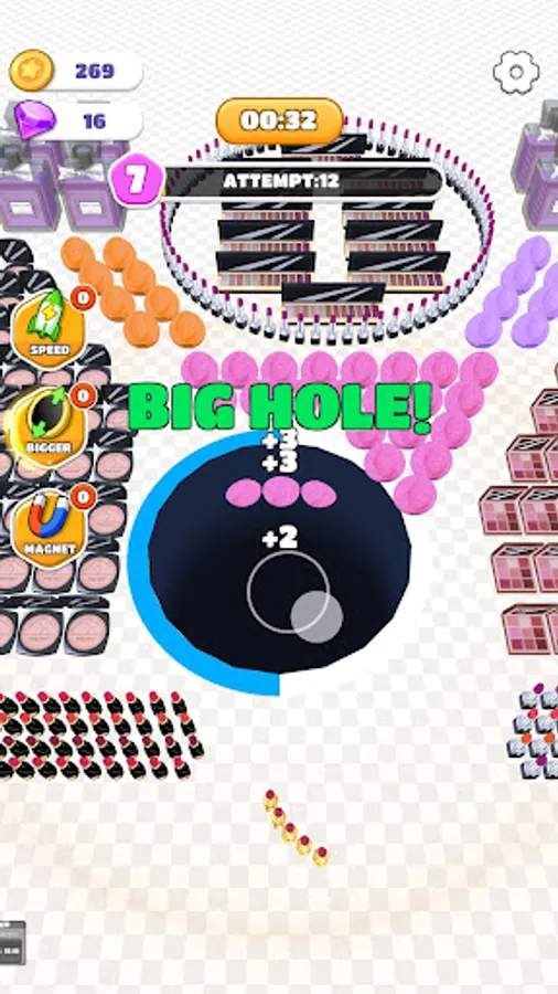 Take control of the black hole and embark on an exciting journey as you slide around the map, collecting various makeup tools in your path. The unique objective of collecting games is to increase the size of your blackhole, allowing it to swallow even larger makeup kits like attack hole. As you progress, players get to swallow a wide range of makeup tools, from brushes and eyeliners to lipsticks and more. Fill the hole, giving your blackhole an ever-growing appetite for cosmetics.๐