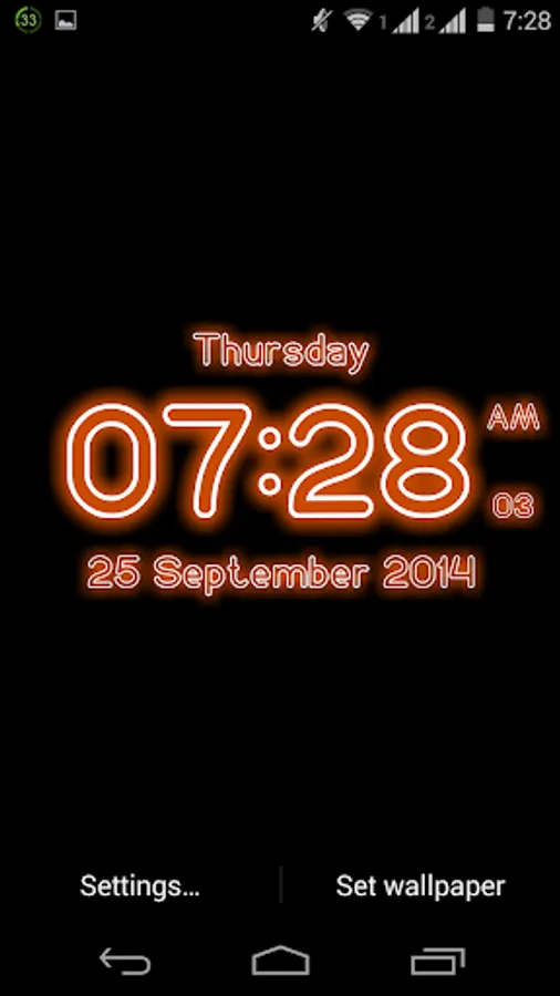 This is simple live wallpaper with Neon style Digital clock. Neon Digital Clock Live Wallpaper also display clock with date and day of week.
