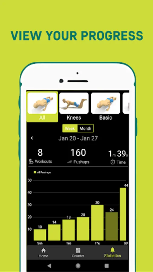 Pushups Perfect not only helps counting the number of push-ups workout you do, but also helps you in keeping track of your progress.
