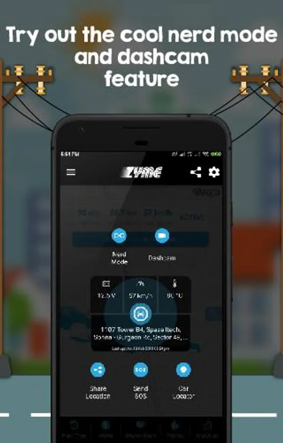• Dashcam – Use your mobile’s rear camera to make a video recording of your trip with your speed and RPM projected on the screen and share the coolest dashcam videos on your social circle through our application