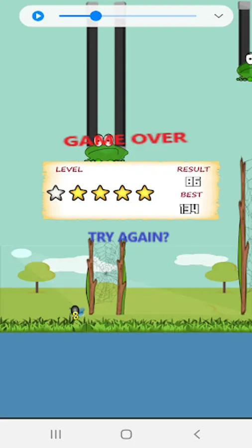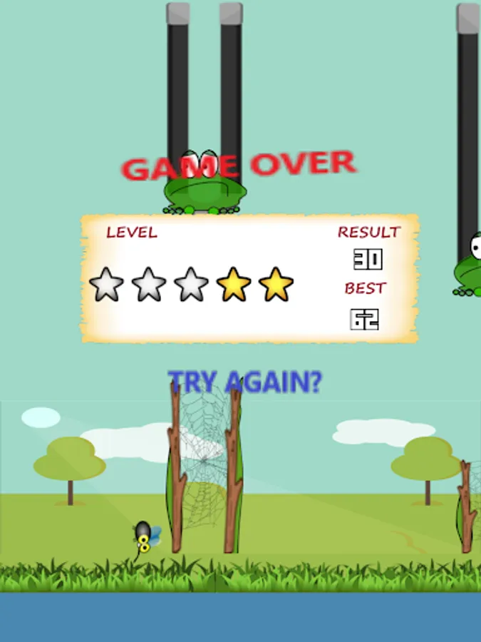 Когда комар пролетает препятствия, считаются баллы. Количество баллов соответствуют звёздам: от 2 до 17 баллов - 1 звезда; от 17 до 50 баллов - 2 звезды; от 50 до 80 - 3 звезды; от 80 до 120 - 4 звезды; от 120 и выше - 5 звёзд. Соревнуйтесь с друзьями, на то кто лучше обходит препятствия, зарабатывайте звезды и баллы!