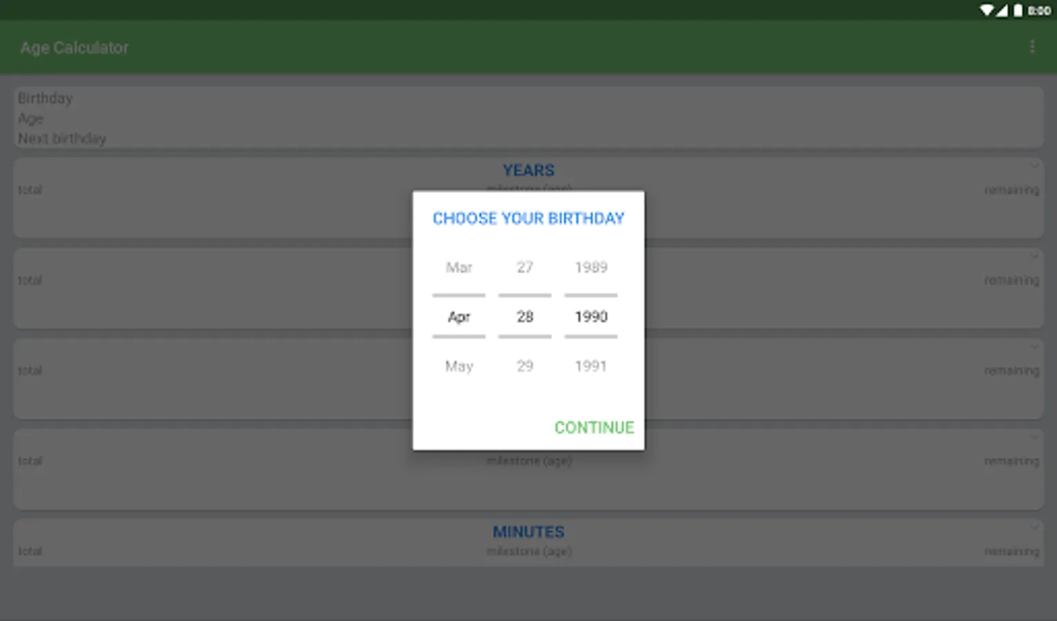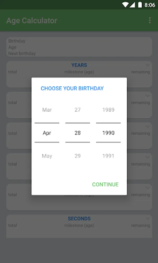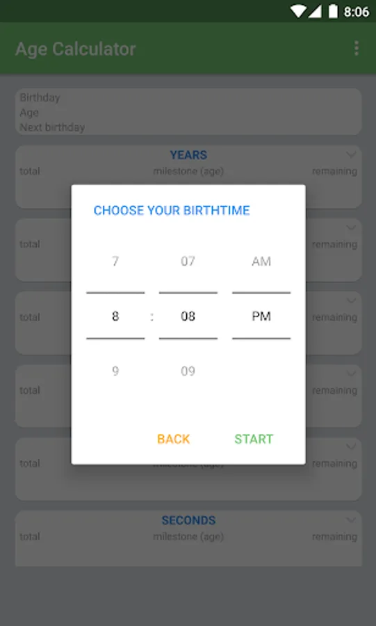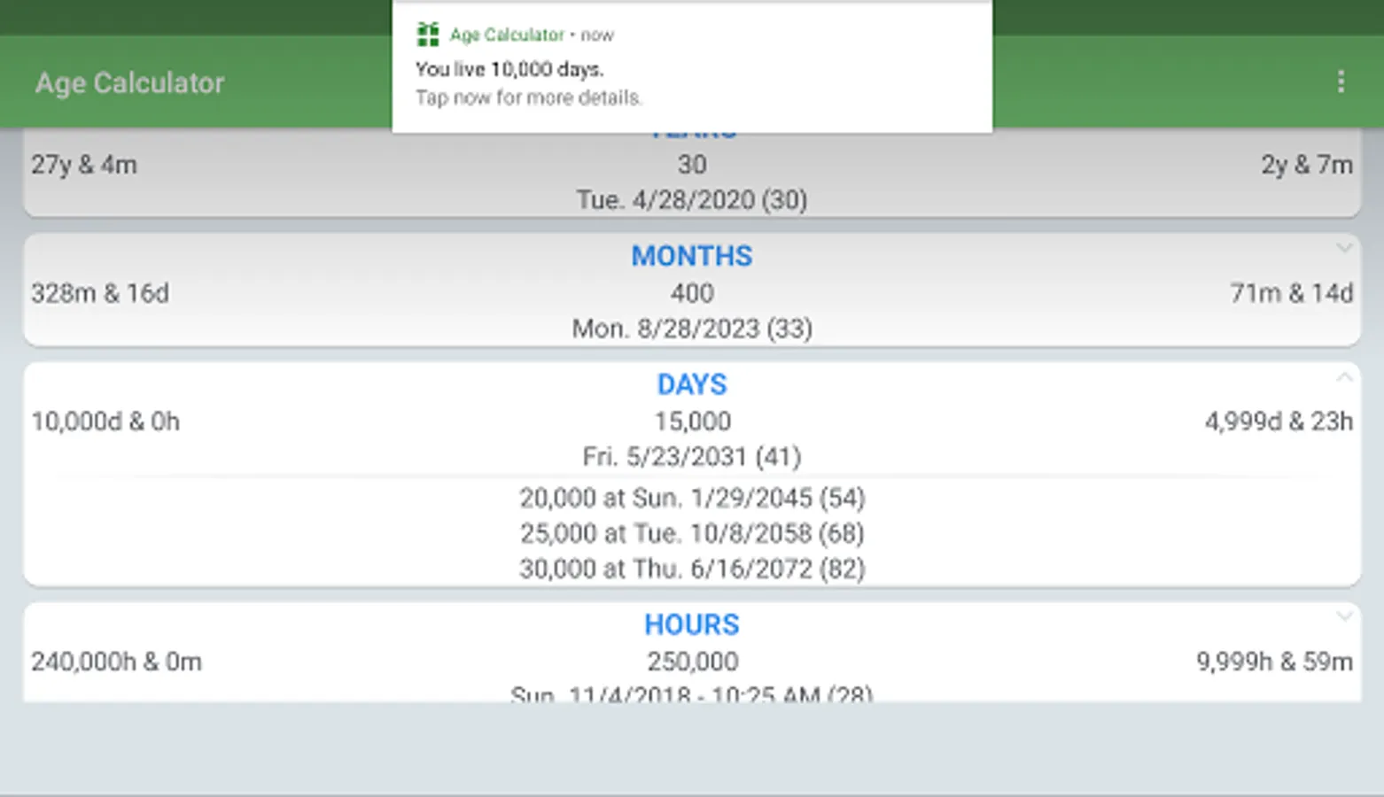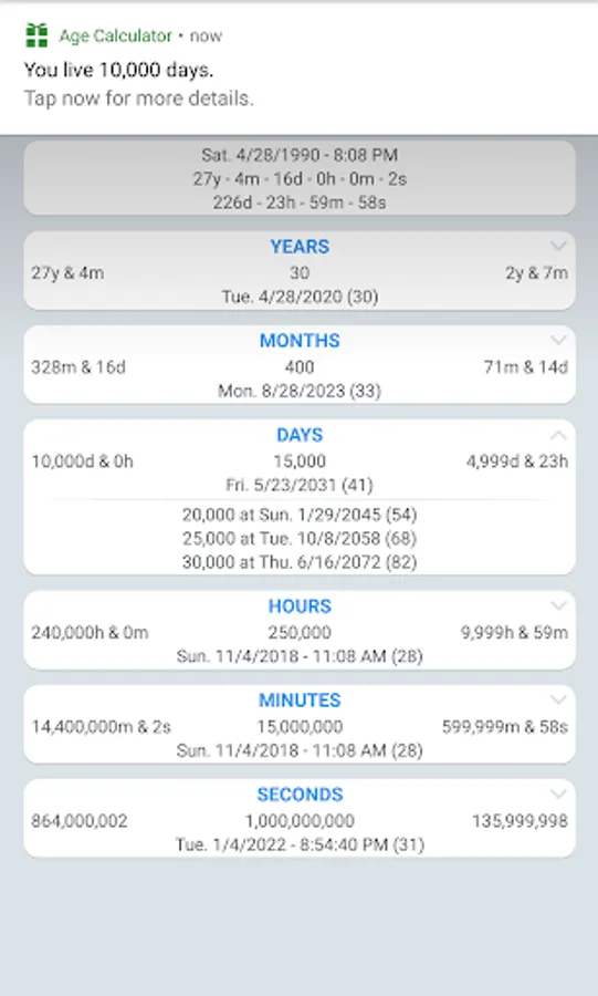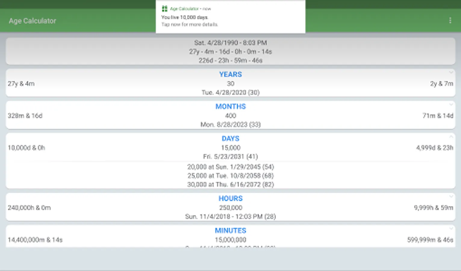 - Realtime age in years, months, days, hours, minutes and seconds.