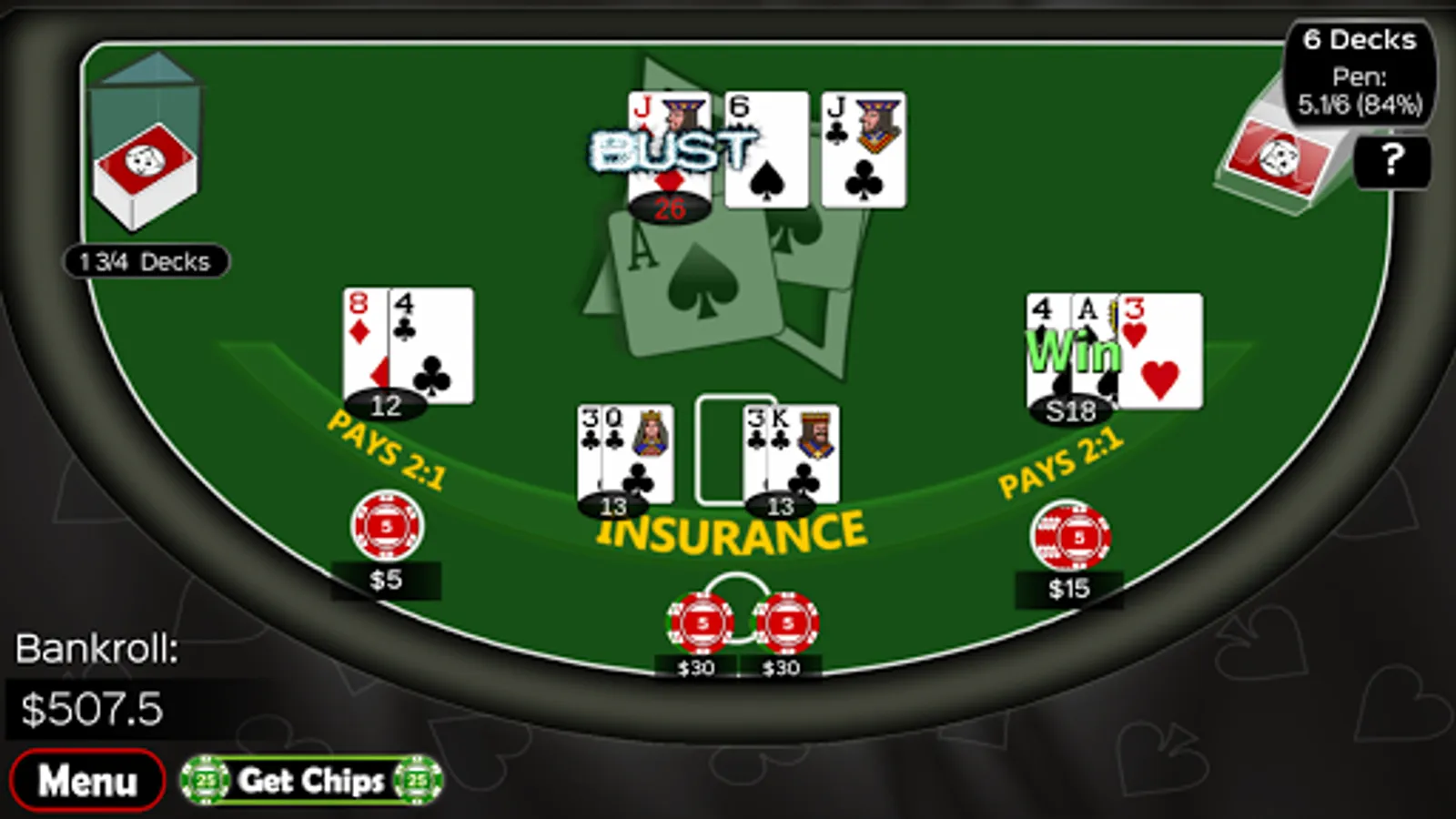 Game Play Drill - The most powerful drill in the application. Play Blackjack with completely customized rules. Set up your betting strategy and when to receive alerts. Easy access to charts and your errors. This is a custom training experience tailored to how you like to practice. Designed to practice every aspect of counting cards.