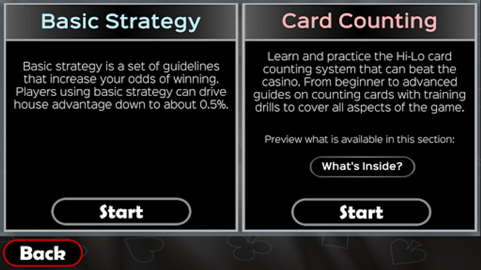 ● Card Counting Training Guides - From beginner to advanced guides covering the Hi-Lo counting system.