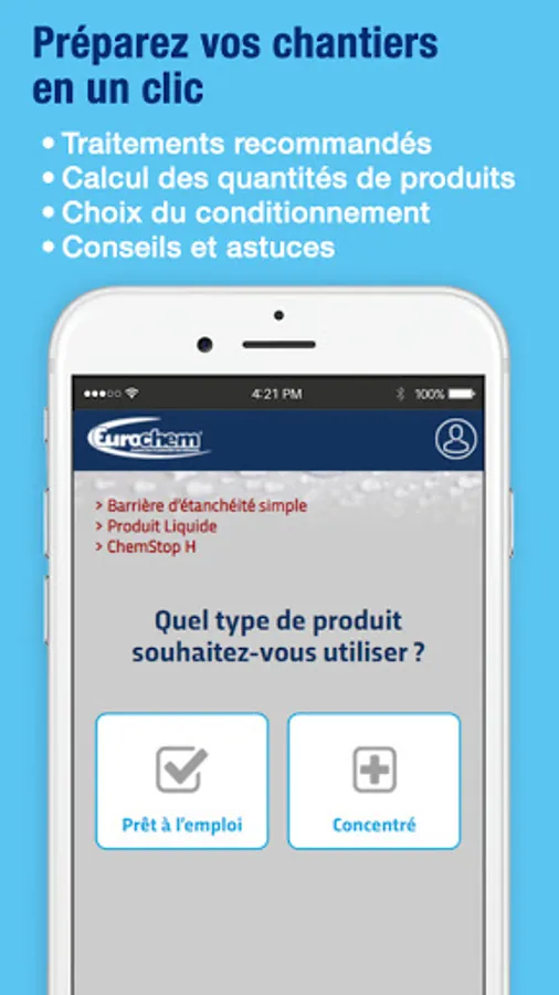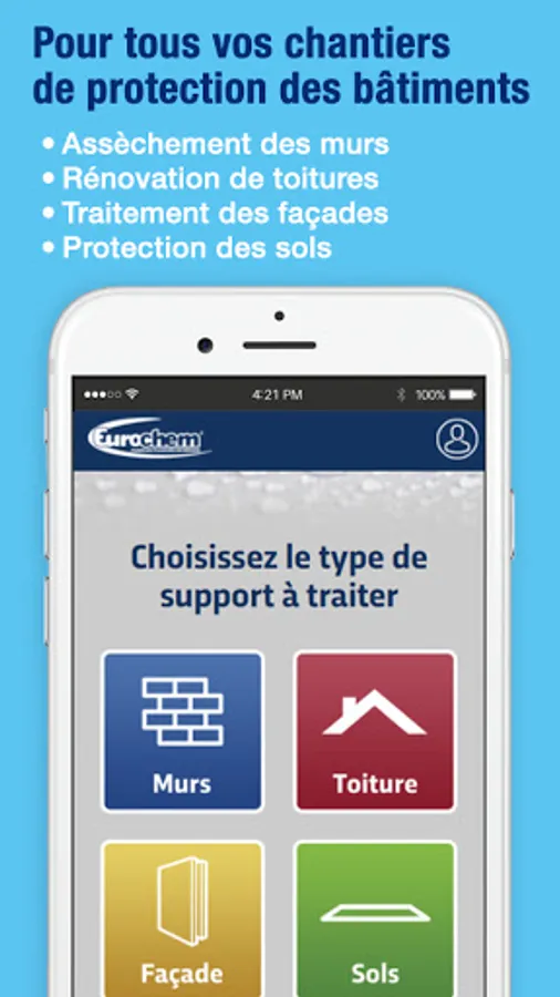 Application reserved for building professionals, created by EUROCHEM, European leader in the manufacture of products for the protection of buildings.