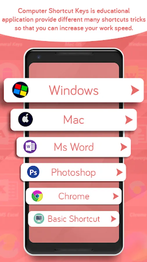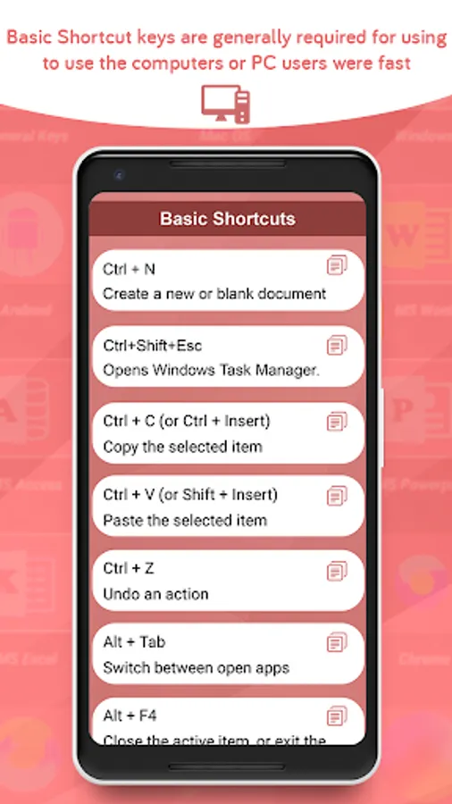 There are multiple all short cut keys and these are all taught in computer training classes only. But remembering them all at once can be really troublesome. The app Computer keyboard shortcut keys will help you to remember and access all the keyboard shortcuts at one go. It is a utility app that you can use without any prior computer training, but your knowledge about keyboard shortcut keys will be always at par.