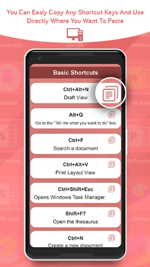 In one word, it saves time and helps in acquiring excellent command over keyboard and relayed computer operation. With these all computer shortcuts, you will get to operate computer without using the mouse. Using computer will be more efficient and quick with this all shortcut keys app at your ready access.