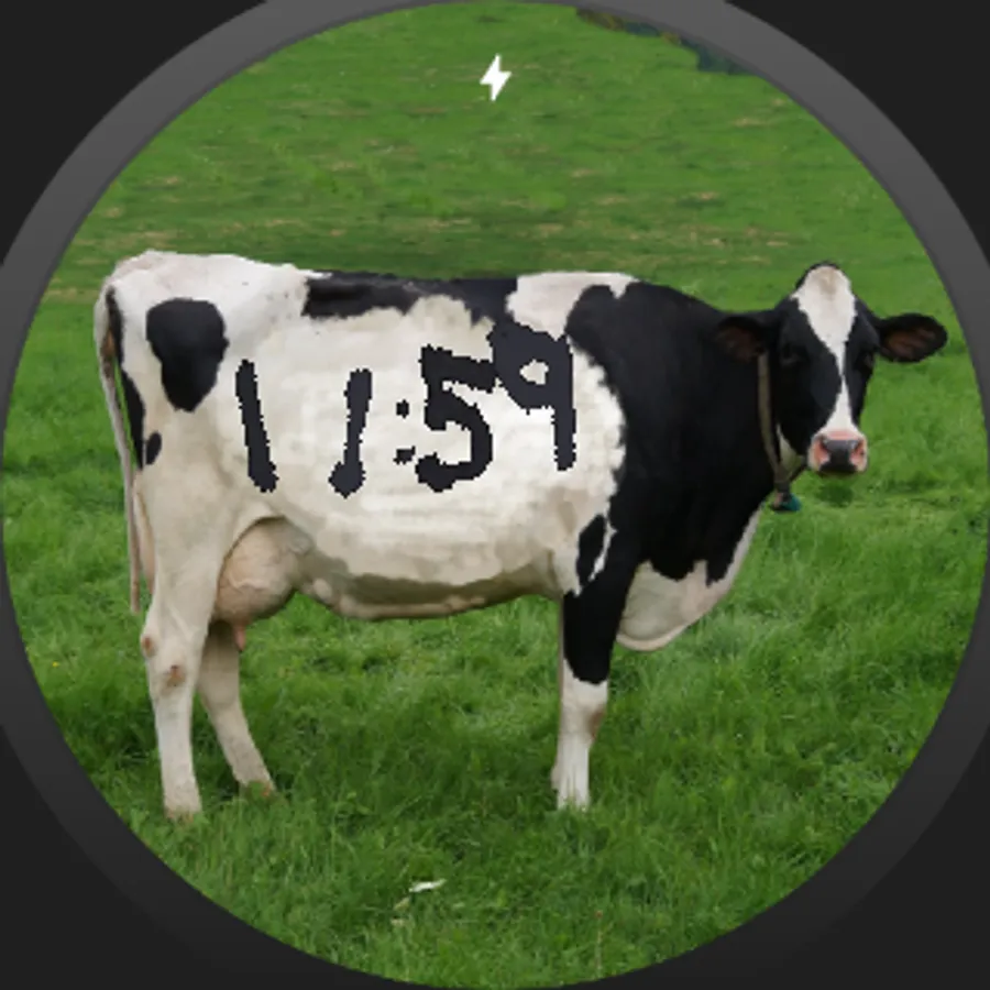 Moo Cow for Android Wear. Hay, this watch face is a quality moo-vement which is outstanding in its field. If you have a speaker on your wear device, then tap the face for some udderly hip audio.