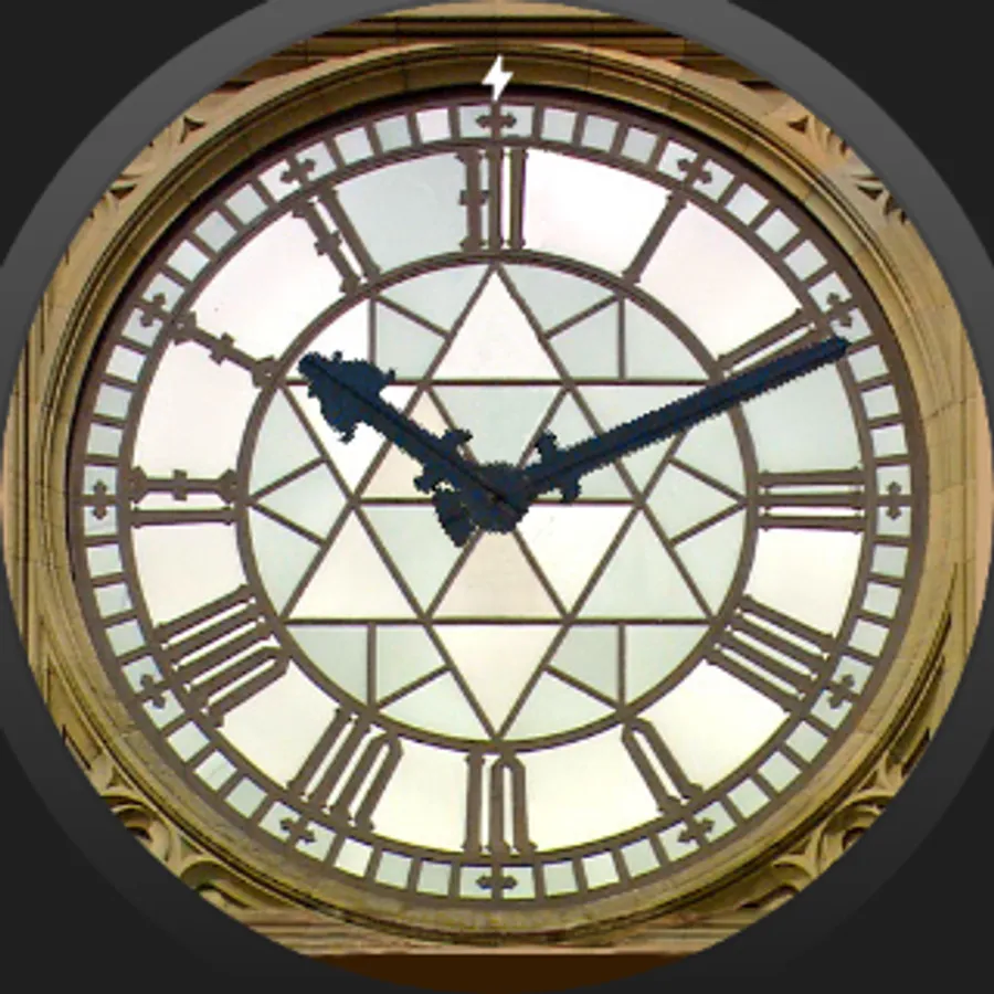 The Peace Tower clock face from the Canadian Parliament in Ottawa. If your Android Wear device has a speaker this will play the hourly chime from the Peace Tower's carillon. Use your phone's Do-Not-Disturb timer function to mute night-time chimes or disable the chimes in the watch face settings.