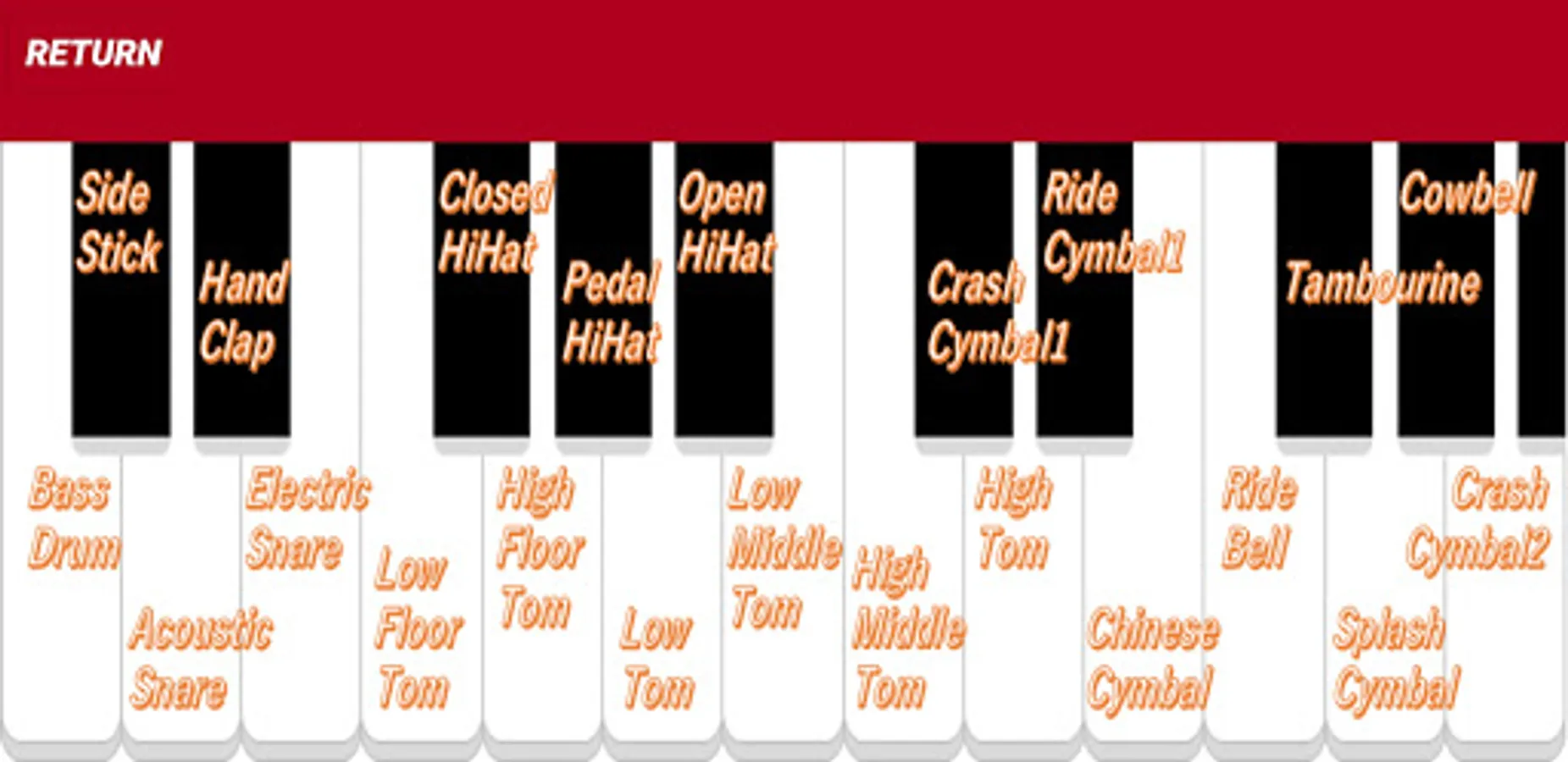 I placed the parts of the drum set on the piano keyboard.