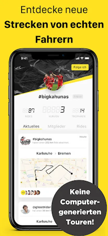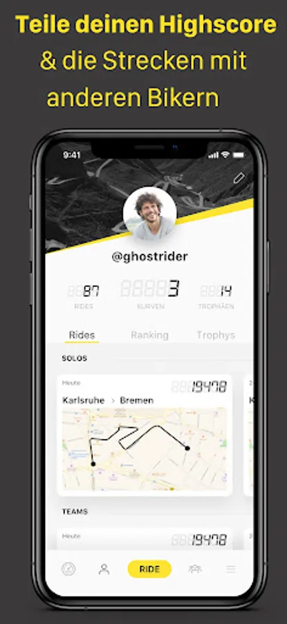 The motorcycle tour with the most curves appears in the high score list. All your motorcycle tours are totaled and saved in a user score list. With every new year, the fun starts again and you get prizes for your cornering.🏆 The app not only offers a way to measure your own performance, but also to compare yourself with other drivers.