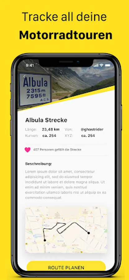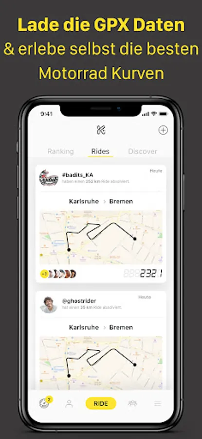 Are you a passionate motorcyclist and would like to track, find and share the curves you have driven? Then Curve Hero is the ideal app for you! With curve hero you can count your cornering and compete with other drivers. Download the app and call up the current high scores on your smartphone at any time. Share your high score, your routes and find the perfect tour for yourself from a huge pool of motorbike tours from other bikers.