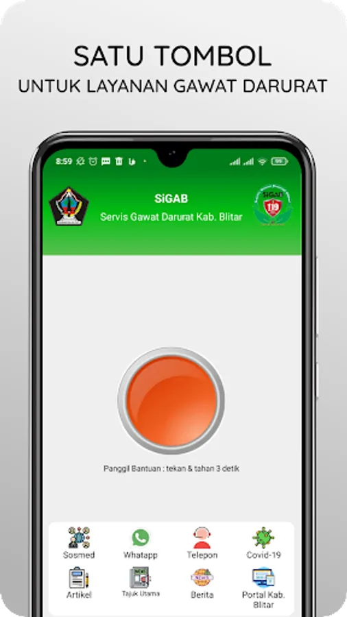 SiGAB (Servis Gawat Darurat Blitar) allows residents in Blitar Regency to get pre-hospital emergency services easily and quickly by simply pressing the emergency button on the application.