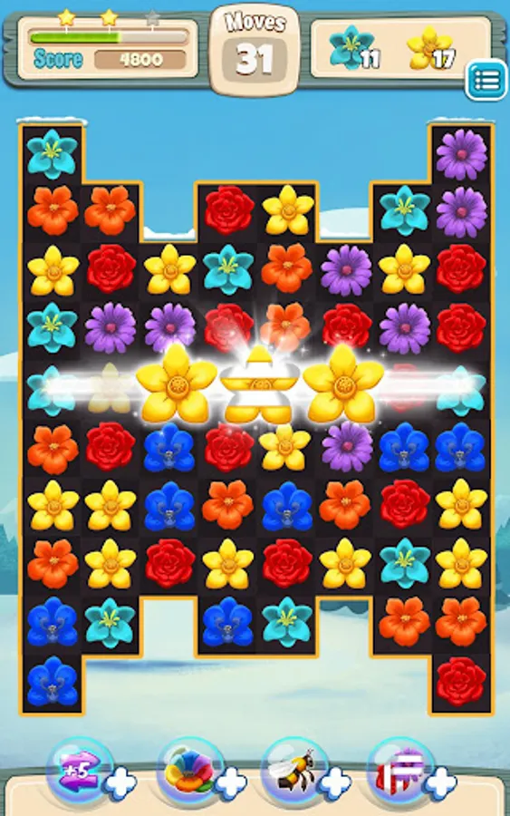 * Match 5 winter flowers in a row to get a rainbow blast.