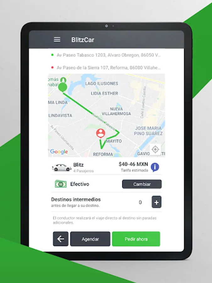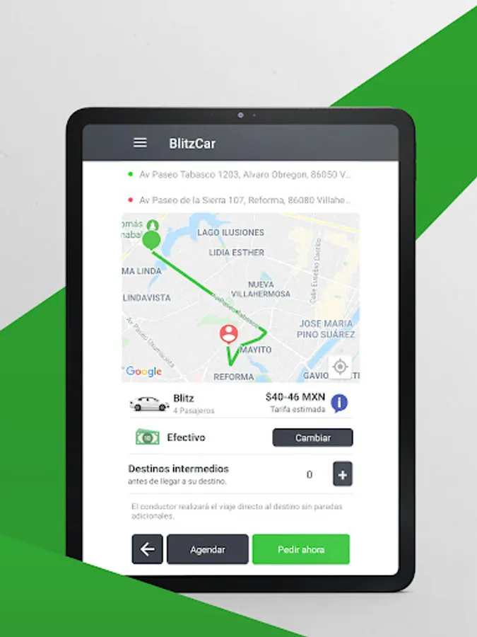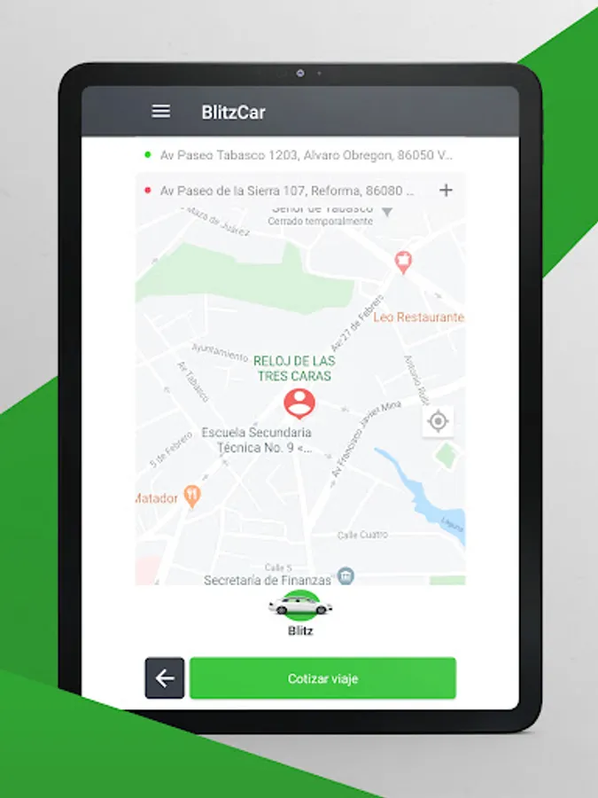 We have the right car for you, we have 2 types of service: Blitz and 6P, request the one of your preference with rates so that you pay just enough; You will also have the option of evaluating us at the end of your trip, with this we ensure that we give you the service you deserve.
