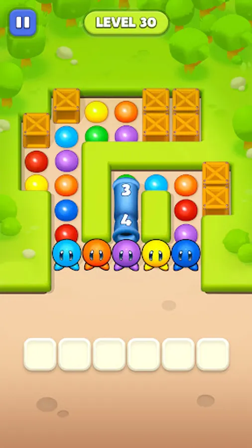 🚧 Beware of various obstacles on the way that block the bubbles. Find your way through the uneven landscape, barrels, and other barriers.