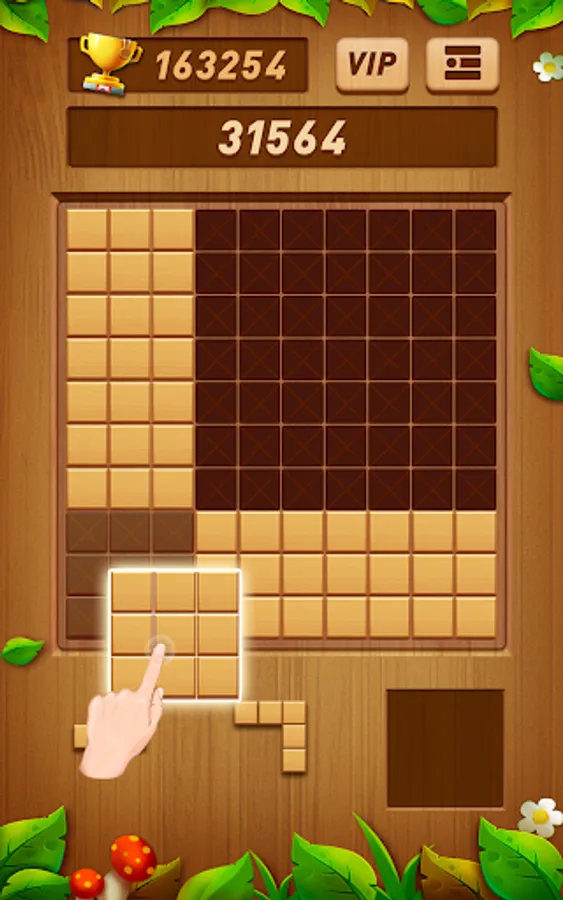 Block Wood Puzzle is a 10x10 game in which you have to place the wooden blocks onto a board of ten-by-ten squares. The blocks come in all kinds of shapes ...