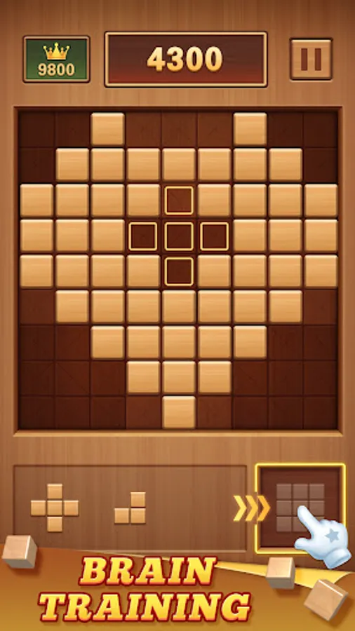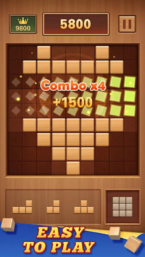-Drag & move wooden blocks to fill the 9x9 board grid.