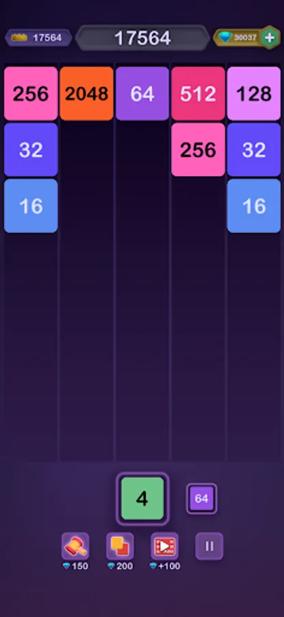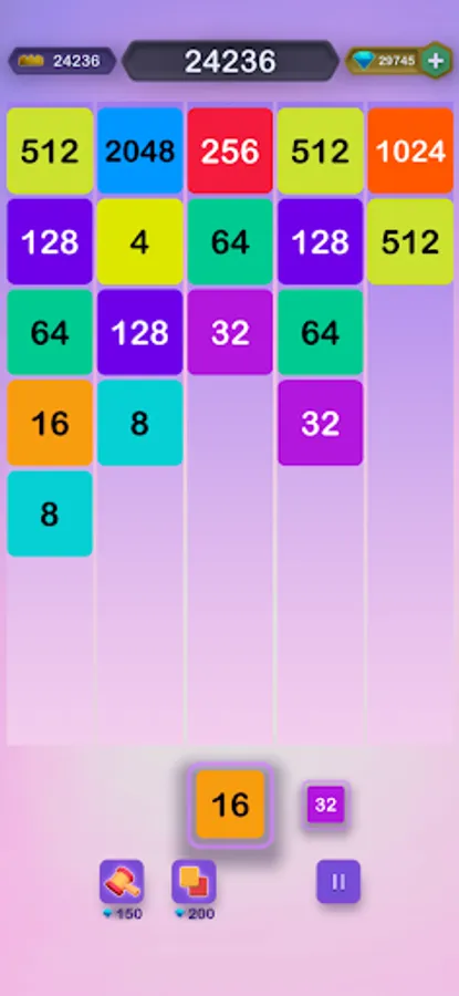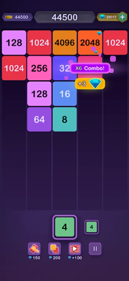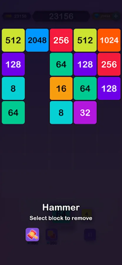 Got stuck? Collect diamonds and use them to get amazing power-ups. Use the Hammer to destroy any block or Swap any two blocks so that you can merge two same-numbered blocks which are far apart.