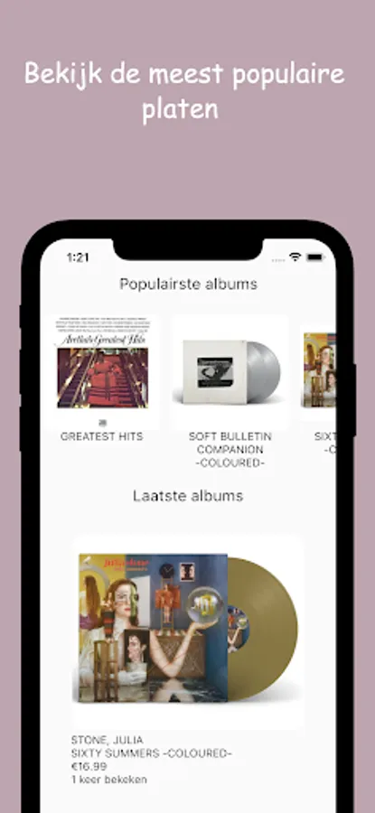 In this simple overview you get the latest deals from the best record stores in the Netherlands. You get direct access to the app and can see which records are currently being viewed the most.